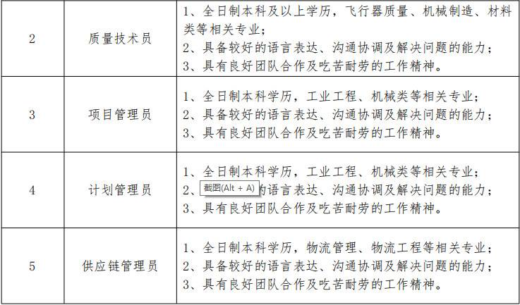全日制本科及以上学历,飞行器制造、机械制造、材料化工类等相关专业。